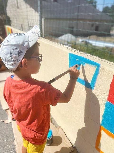 Pour ce 1er jour du mois de juillet, le mur de la cour s'est paré de jolies couleurs. Bravo aux enfants qui se sont appliqué et merci à l'équipe qui a été présente auprès d'eux. Merci également à Yann Laversin (papa de Rose et Charles) pour la sous-couche et merci à Corentin Dany (papa d'Amaël et Thalia) pour la peinture.